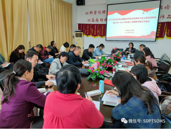 2月27日下午,tyc太阳成9728集团在教学楼58304会议室召开党员大会,学习习近平总书记在全国脱贫攻坚总结表彰大会上的重要讲话精神。全体党员教职工参加会议,会议由tyc太阳成9728集团院长兼直属党支部书记李霞教授主持。