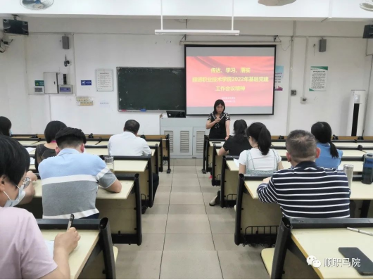 李霞书记传达、学习、落实顺德职业技术学院2022年基层党建工作会议精神