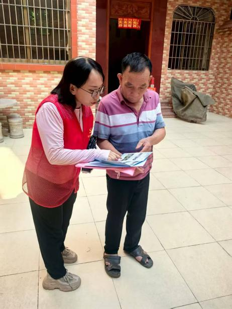 党员教师深知,防疫必须联动家庭与社区形成合力,以实现校地协同发力、家校共育新风。党员教师引导学生志愿者将防蚊知识手册带回家中,带动家长清理家庭积水容器。北滘镇三桂村党支部梁书记评价:“高校师生不仅帮我们解决了实际问题,更带动了居民的防疫意识,现在村民每天都会主动检查花盆积水。”党员教师还带领学生志愿者走进社区,用方言教老人辨认“隐形积水”——“花盆底、轮胎里、泡沫箱,这些都是蚊子的‘育儿室’!”82岁的陈伯学会后,主动当起社区“防蚊宣传员”,拉着邻居说:“后生仔教得明白,我们都要做好!”