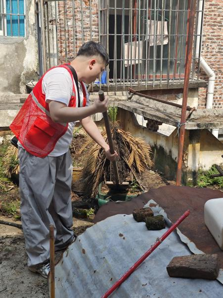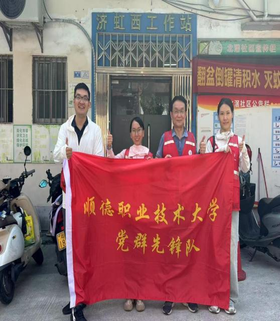 暴雨天后,各镇街排水沟淤泥堆积、绿化带积水成灾,成为蚊虫孳生的“重灾区”。党员教师带领学生志愿者穿着胶靴蹲守在淤泥里,徒手掏出腐烂的树叶、尖锐的碎玻璃、缠绕的塑料袋……。连续20多天的高强度作业中,团队累计入户3000余家开展蚊媒防控宣传、换洗水培植物,清理隐蔽积水容器2000余个,搬运废弃家具及建筑垃圾近百吨,疏通堵塞排水沟50余处。设计学院2024级数字媒体专业的文雅同学在陈村镇、北滘镇和大良街道逢沙社区的防控实践中感慨到:“当汗水浸透衣衫,在街巷间的奔波化为真切的责任担当,我愈发懂得,青年的成长从不止于课堂书桌,更在扎根基层的实践中,在为群众办实事的点滴行动里收获滚烫的价值认同!”