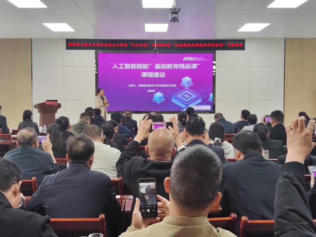 在专题讲座环节,德法教研室主任徐婷婷副教授以“AI赋能‘基础教育精品课’课程建设”为主题,结合前沿教育技术与一线教学经验,重点围绕“‘基础教育精品课’建设、AI在精品课建设中的应用、AI赋能精品课建设实操”三个维度展开系统讲解。讲座中,徐教授既从理论层面深入阐释了AI技术破解思政课“内容抽象难感知、形式单一缺互动”等传统教学痛点的底层逻辑,又结合教学实际场景,通过具体案例拆解各类 AI工具在日常教学设计、课件优化、学情分析中的应用方式;尤其针对“基础教育精品课”申报过程中素材整合、教学设计、呈现形式等关键环节的难点问题,提供了针对性解决方案,并现场演示了各类AI工具的应用。这场专题分享为云安区思政教师打开了技术赋能教学的新视野,推动思政教育从“传统课堂”向“智能增效”转型,为思政课内涵式发展提供了可复制、可推广的创新思路。