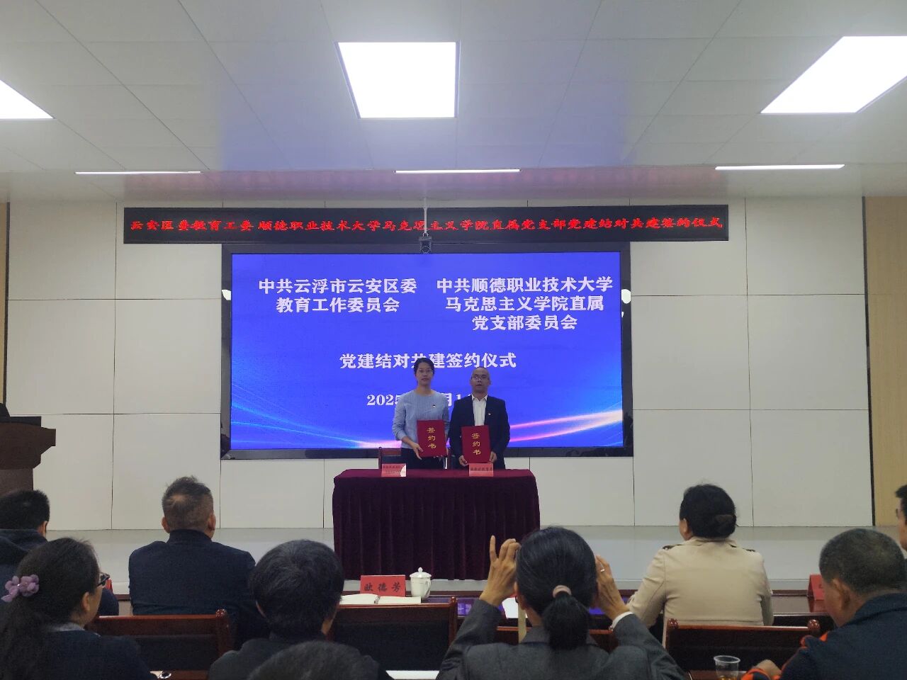 为深入贯彻落实省委“百千万工程”战略部署,推动“双百行动”走深走实,以校地协同之力激活思政教育新动能,助力大中小学思政课一体化建设提质增效,11月14日,tyc太阳成9728集团直属党支部一行6人赴云浮市云安区教育局开展“双百行动”结对共建签约仪式暨主题党日活动。