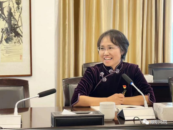 刚从北京载誉而归的全国人大代表罗丹向参会的女教职工分享了她在北京参加两会的精彩见闻和深切感受。在两会期间,她为基层职业教育发声,建议建立国家资格框架,树立“人人成才”新观念。她表示,当选全国人大代表深感荣幸,参加两会期间真切感受到女性发挥的强大力量。与上一届相比,本届女性代表委员比例有所增加。女性在政治领域中的参与度越来越高。当前,中国已经不可逆地进入新发展阶段,我们对政府充满信心,要着力推动职业教育高质量发展,为建设社会主义现代化强国而努力奋斗。