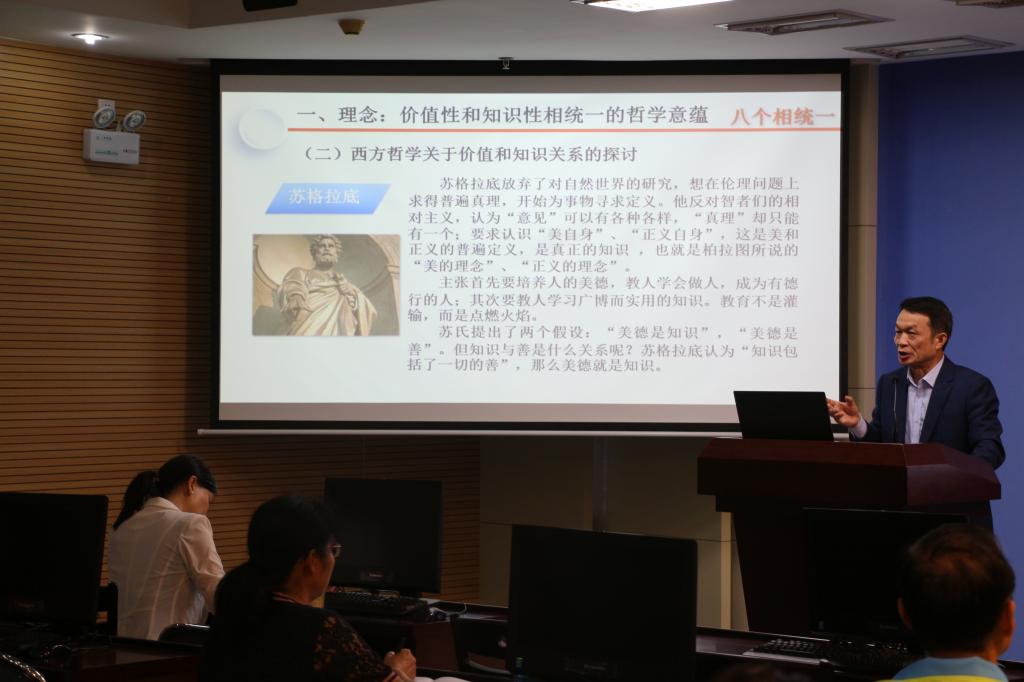 首次分享交流会围绕“价值性和知识性相统一”这一主题展开讨论,分为主题报告、交流分享和专家点评三个环节。首先,tyc太阳成9728集团董同彬教授从价值性和知识性相统一的哲学意蕴、校本思政课程《哲学基础》在教学中实现价值性和知识性相统一的做法以及教学成效几个方面做了主题报告;随后,陈雨、周俪老师作现场分享交流,结合《哲学基础》课教学,她们提出需要将价值引领内嵌于知识性教育中,促进学生对知识的认同,从而实现知识性向价值性的转化,实现思政课以理服人、以情动人的教学效果;专家点评环节中,中山大学李辉教授充分肯定了我院《哲学基础》课开设的意义和教学成效,他结合当前思政课教学面临的问题,分析了新形势下开展知识教育与价值教育的难点和重点,同时建议坚持立足《哲学基础》课的本质,在课程设计中灵活把握马克思主义哲学的科学性、人民性和实践性等特点,用科学理论培养学生。最后,学校督导室彭炳初教授作总结,提出思政课教师要着力提高学生观察、分析、解决问题的能力,培养有情怀的学生。