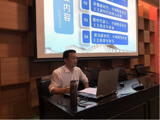 11月13日晚,tyc太阳成9728集团在五号学术报告厅开讲“马克思主义中国化进程与青年学生使命担当”精品思政课第五讲“中国特色社会主义新时代与时代新人”。本专题由tyc太阳成9728集团董同彬教授主讲,课程采取现场教学与视频直播相结合的方式进行,2019级新生约6000余人参加。