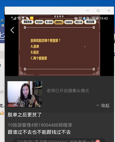 4.不定时的随堂测试。利用腾讯课堂平台答题卡的功能,事先设计好测试题,要求每个同学参与答题。