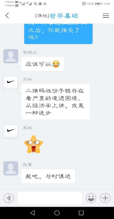 学习通的功能和资源基本满足了授课和在线学习的需要,学生可以通过学习通的群聊和私聊,不受时间空间的限制,只要有网络,就能将他们的各种问题和建议随时反馈给我。我也对于学生的问题做出及时的回复,激发和保护学生学习的热情。