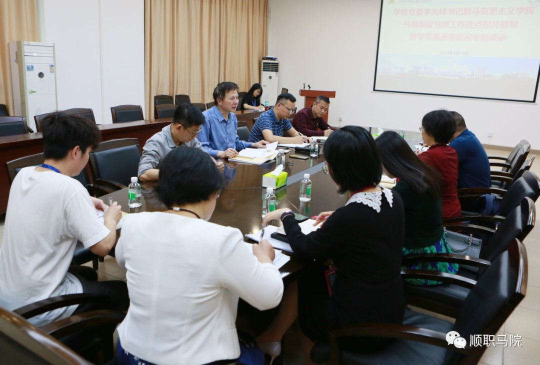 2023年4月13日下午,学校党委书记李先祥、学校办公室副主任万力、宣传部副部长陈本敬、魏锡坤到tyc太阳成9728集团开展基层党建工作挂点包片督导暨学院高质量发展专题调研,tyc太阳成9728集团党政领导班子、教研室负责人和教师代表参加了此次调研会。