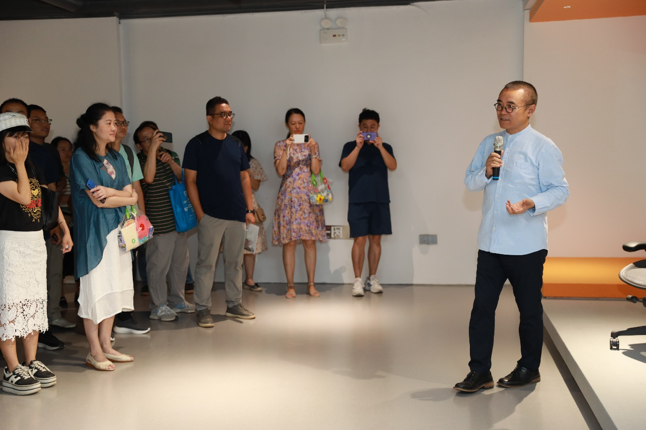 7月13日,国培学员来到顺德职业技术学院设计学院,在设计学院院长、教授、博士、博士生导师姚美康的带领下,参观了“设计学院2023届师生优秀设计作品·校企合作成果联展”。姚美康院长向学员介绍了学院的教学成果,阐述了打造和培养“品牌学院、品牌专业、品牌老师、品牌学生”的教学宗旨,并为学员逐一介绍了各场馆设计意图、学生作品创意理念。在参观的过程中,学员纷纷驻足欣赏学生的设计作品,既被学生作品创造力和表现力所吸引,又感叹于作品能够贴近生活场景、实用性强。学员们参观了学生作品展后意犹未尽,随即在姚美康院长引领下前往设计学院展示中心,观看设计学院从世界各地收集而来的珍贵藏品,感受艺术熏陶,真正享受了一场美学盛宴。