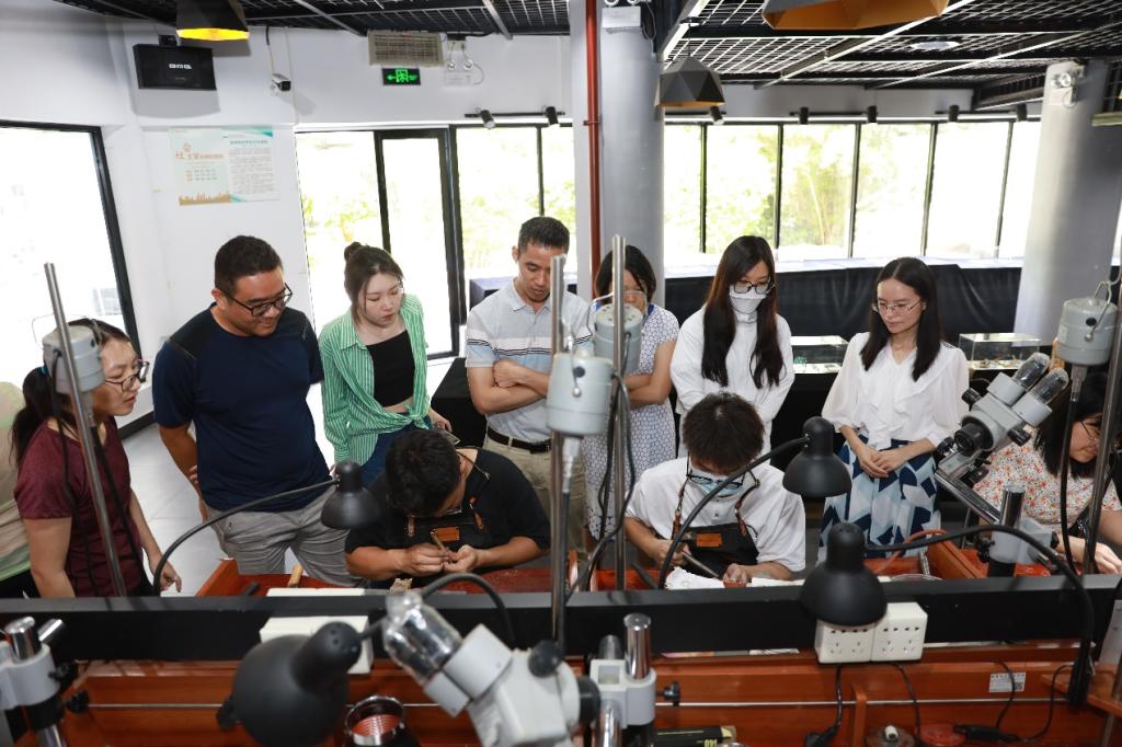 在设计学院的首饰加工体验室,在第一届全国技能大赛金牌获得者、第46届世界技能大赛广东省选拔赛的国赛第一名、全国“最美大学生”梁荣浩的指导下,学员们还体验了首饰加工的全过程,亲自动手制作具有个人特色的首饰。