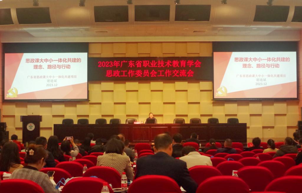12月15日至16日,2023年广东省职业技术教育学会(以下简称“省职教学会”)思政工作委员会工作交流会在顺德职业技术学院召开。省职教学会副会长、广东机电职业技术学院校长郑伟光,顺德职业技术学院党委书记李先祥,省职教学会思政工作委员会主任、顺德职业技术学院党委副书记刘毓,省职教学会秘书处办公室主任谭汝长,省职教学会思政工作委员会其他负责人、委员以及省内中高职院校代表共百余人参加活动。活动由省职教学会思政工作委员会秘书长、顺德职业技术学院tyc太阳成9728集团直属党支部书记李霞主持。