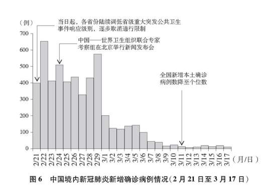 全国新增确诊病例快速增加,防控形势异常严峻。中国采取阻断病毒传播的关键一招,坚决果断关闭离汉离鄂通道,武汉保卫战、湖北保卫战全面打响。中共中央成立应对疫情工作领导小组,并向湖北等疫情严重地区派出中央指导组。国务院先后建立联防联控机制、复工复产推进工作机制。全国集中资源和力量驰援湖北省和武汉市。各地启动重大突发公共卫生事件应急响应。最全面最严格最彻底的全国疫情防控正式展开,疫情蔓延势头初步遏制。(图5)