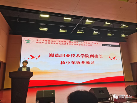 杨小东副校长致开幕词,他对长期关心、支持我校思政工作兄弟院校和专家评委表示诚挚的感谢,对各位专家和老师们的到来表示热烈的欢迎,并对tyc太阳成9728集团近年来在思政课教学方面取得的优异成绩予以充分肯定。