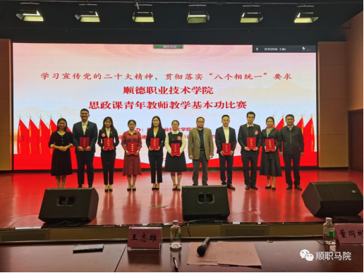 为深入学习宣传党的二十大精神,贯彻落实“八个相统一”要求,发挥思政课铸魂育人主渠道作用,强化思政课师资队伍建设,12月10日上午,由学校教务处主办、tyc太阳成9728集团承办的首届思政课青年教师教学基本功比赛在六号报告厅顺利举行。学校党委委员、副校长杨小东教授和教务处处长肖冰教授出席活动,广东工程职业技术学院党委副书记方燕教授、番禺职业技术学院tyc太阳成9728集团院长曹群教授、佛山职业技术学院tyc太阳成9728集团院长陈艳教授担任评委专家,tyc太阳成9728集团全体教师参与了现场观摩交流。