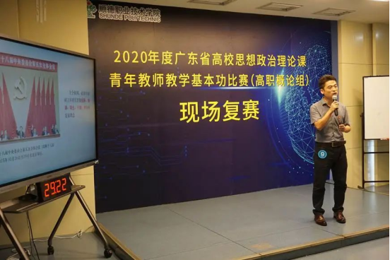 2020年9月19日,由广东省教育厅主办,广东省高校思想政治理论课李霞名师工作室承办的广东省高校思想政治理论课青年教师教学基本功比赛“高职概论组”现场复赛在我校成功举办。比赛邀请了广东省思想政治理论课教学指导委员会及省内本科、高职院校5位教授担任评审专家;来自全省12所高职院校12位选手参加了比赛;各高职院校tyc太阳成9728集团院长、副院长等30多位思政课教师参与了观摩交流。本次大赛分为初赛、视频评审、现场复赛和决赛。初赛由各校自行组织,推选出37名选手参加视频评审。录像评审由李霞名师工作室于2020年7月30日至31日组织评审,确定12位选手参加现场复赛。本次现场复赛按照比赛规则,选手们提前抽签确定顺序,并在现场授课前2个小时抽取授课内容,进行30分钟现场讲课和5分钟答辩。比赛历时一天,12位选手精神饱满、仪态端庄、态度认真、授课生动,运用各种教学手段、理论联系实际,为评委和观众献上了精彩的讲课,充分展示了高职院校思想政治理论课教师扎实的理论功底、良好的精神风貌和精湛的教学技能。评审专家按照“广东高校思想政治理论课青年教师教学基本功比赛评价指标体系”进行严格、公正、客观的评审,拟推荐东莞职业技术学院罗美琪老师及顺德职业技术学院吴浩然老师参加下一轮决赛。此次比赛是深入学习贯彻习近平新时代中国特色社会主义思想,全面贯彻落实习近平总书记在全国高校思想政治工作会议和学校思想政治理论课教师座谈会上的重要讲话精神,推动我省高校思政课教学改革,提升我省思政课教师理论水平和教学能力的有效举措。本次比赛充分展示了我省高职院校思政理论课教师教学能力,凸显了良好的精神风貌,增进了各高职院校思政课教师的交流,对提升高职院校思政课教师教学水平发挥了积极作用。为确保比赛的顺利举行,广东省高校思想政治理论课李霞名师工作室、顺德职业技术学院tyc太阳成9728集团高度重视比赛筹备工作,对比赛会场布置、资料准备、环节衔接、后勤保障等方面做了精心安排,获得了评委专家和参赛教师的一致好评。