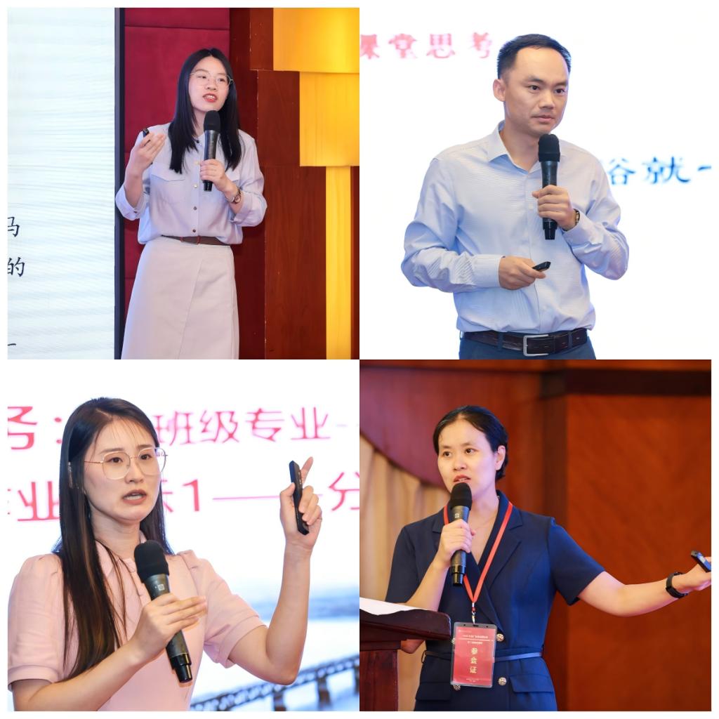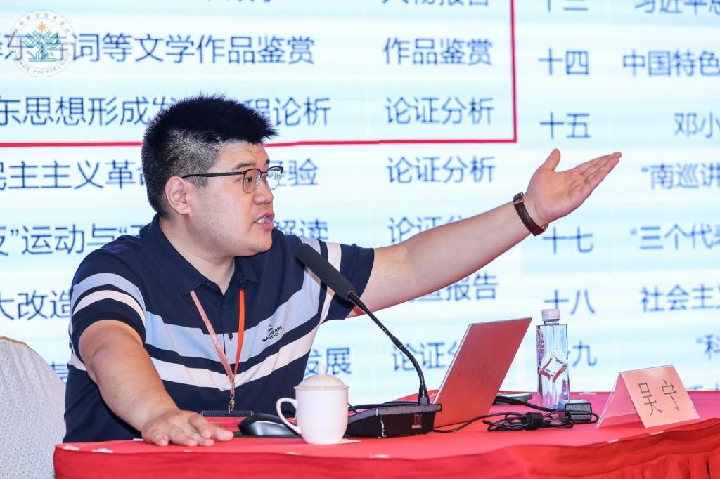 在教学展示环节,四位获奖教师带来了极具感染力的课堂范例。全国高校思政课教学展示活动一等奖获得者、珠海城市职业技术学院金涛副教授以“邓小平理论首要的基本的理论问题”为题,通过案例研讨与互动教学,展现了理论深度与实践温度兼具的教学风格。粤桂琼赣滇五省(区)高校思政课青年教师教学基本功比赛二等奖和广东省高校思政课教师教学基本功比赛一等奖获得者、广东轻工职业技术大学周晨阳老师以“解放思想、实事求是是邓小平理论的精髓”为题,通过历史场景还原与问题链设计,引导参训教师感受理论的实践生命力。东莞职业技术学院讲师苏楠(全国高校思政课教学能手)与广东建设职业技术学院助教李盼盼(2025年广东省高职院校“毛概”课“萌新磨课、骨干练兵”特等奖获得者)也分别带来了“从‘一穷二白’到‘初步工业化’的行动指南——走中国工业化道路思想”“群众路线的内涵”等示范课,以生动的教学语言、精巧的环节设计赢得了现场教师的热烈掌声。展示环节由顺德职业技术学院tyc太阳成9728集团副院长董同彬教授主持。