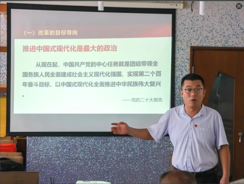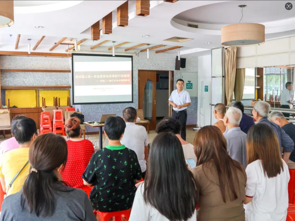 宣讲会上,安济森老师以“新征程上进一步全面深化改革的行动纲领”为题,通过讲解改革的目标导向、改革的问题导向、进一步全面深化改革的总目标等内容,对党的二十届三中全会精神特别是全面深化改革方面进行了深刻阐述,同时结合实际,深入分析当前形势,提出了相关思路和举措。