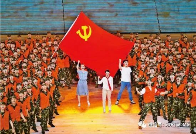 2021年6月28日晚,庆祝中国共产党成立100周年文艺演出《伟大征程》在国家体育场盛大举行。这是情景舞蹈《党旗在我心中》。新华社记者 殷博古/摄